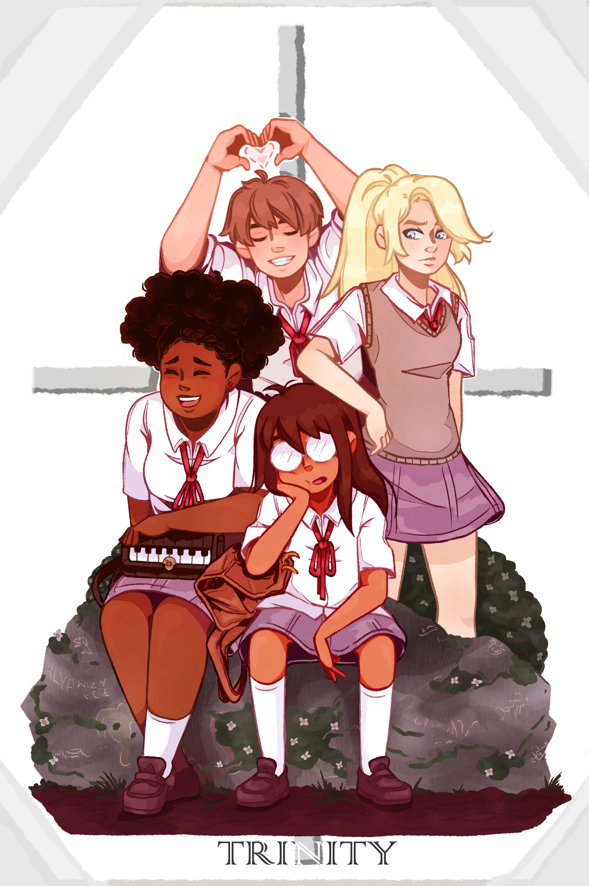 Comic concept about a catholic boarding school, four main characters join the same mystery solving club.